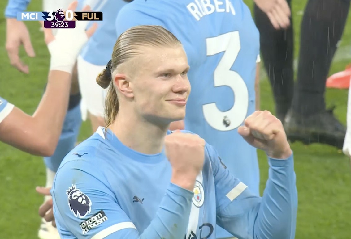 英超第26轮,曼城主场对阵富勒姆,上半场哈兰德打入一球,至此,哈兰德英超生涯已打入107球,这使得他追平了曼联传奇斯科尔斯的英超进球数。此役主场对阵富勒姆,哈兰德在比赛第39分钟打入一球,帮助曼城取得3-0领先。至此,哈兰德英超生涯123次出场已打入107球,这使得他追平斯科尔斯(499场107球),升至英超历史射手榜第31位。英超历史进球纪录保持者是打入260球的阿兰-希勒。